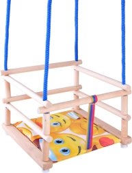 Siguranța este asigurată de o centură de protecție care previne căderea copilului din leagăn.