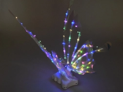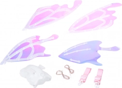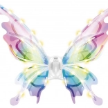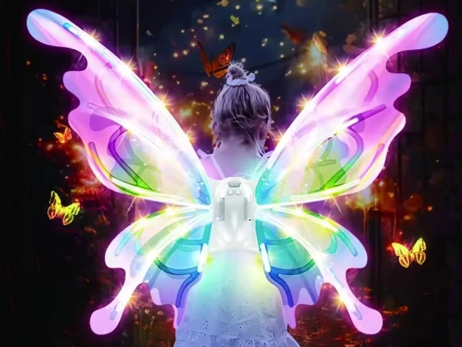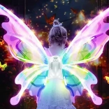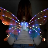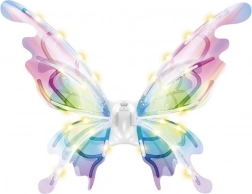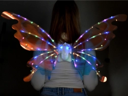 Aceste aripi magice pentru copii imită aripile mari de fluture, care, în funcție de unghiul luminii, strălucesc superb și își schimbă culorile. Iluminarea LED integrată și mișcarea mecanică a aripilor creează un spectacol efectuos, care va încânta orice mică zână, elf sau fluturaș.