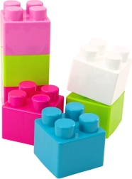 Acest set de cărămizi mari este ideal pentru primele construcții acasă și în călătorii. Piesele în culori vibrante (verde, roz, alb, turcoaz) se îmbină ușor și îi încurajează pe copii la creativitate și joc independent. Datorită dimensiunilor mari, se țin confortabil în mână și sunt potrivite și pentru copiii mai mici.