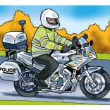 Sunt disponibile opt planșe de colorat, inclusiv mașină de poliție, motocicletă, barcă, dubă, elicopter, cal și polițiști. Numărul total de pagini este 16.