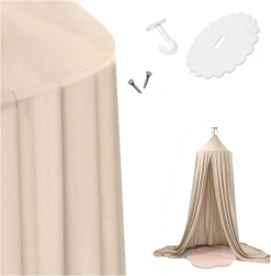 Baldachinul bej este ideal ca refugiu liniștit deasupra pătuțului, colț de citit sau ascunzătoare pentru copii. Țesătura fină și aerată are un aspect elegant și se potrivește majorității stilurilor de amenajare a camerei copilului.
