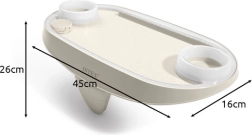 Proiectată pentru maximă practicitate și siguranță: 2 suporturi pentru băuturi care mențin paharele, cănile și sticlele fără risc de vărsare, în timp ce suprafața pentru tabletă sau smartphone îți permite să urmărești conținutul preferat în deplin confort. Alimentarea este asigurată de 2 baterii CR2032 (incluse), astfel încât nu ai nevoie de cabluri sau instalare.