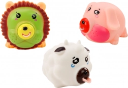 Atractia principală a acestor figurine este funcția interactivă: la apăsare, fiecare animăluț scoate un sunet de fluierat și i se arată o limbă amuzantă din gură. Această reacție neașteptată va stârni cu siguranță un zâmbet pe fața fiecărui copil și va încuraja joaca repetată.