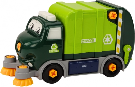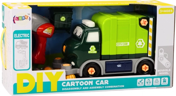 Acest camion de reciclare desenat, DIY, le permite copiilor să pătrundă în lumea utilajelor și a mecanicii. Datorită bormașinii de joacă sigure, șurubelniței și capetelor interschimbabile, copiii pot demonta și reasambla singuri mașina, antrenând motricitatea fină, gândirea logică și răbdarea. Periile frontale se rotesc în timpul mersului, iar împreună cu coșul inclus creează o simulare autentică a curățeniei stradale.