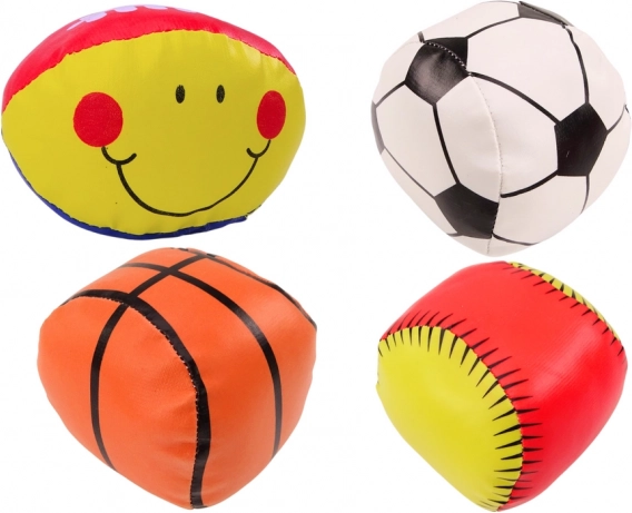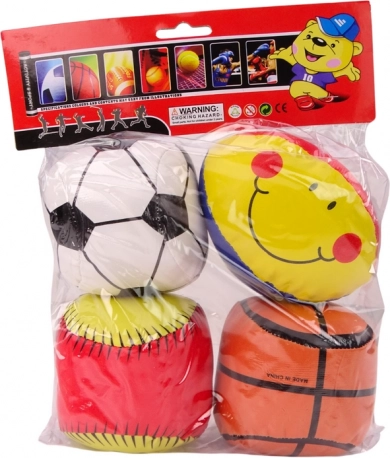 Setul distractiv de 4 mingi moi pentru copii oferă joc în siguranță și învățarea diferitelor sporturi – fotbal, baschet, baseball și rugby. Fiecare minge este moale și sigură, ideală chiar și pentru cei mai mici sportivi. Săculețul transparent facilitează transportul pe teren, în parc și în excursii. Excelent pentru dezvoltarea motricității, coordonării și lucrului în echipă.
