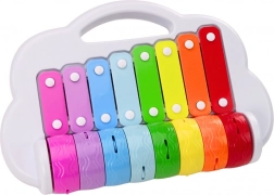Cimbalul este așezat pe un suport alb stabil, cu mâner, care permite transportul ușor al jucăriei. Datorită acestui lucru, copiii se pot bucura de cântat în diverse locuri, atât în interior, cât și în exterior. Această jucărie muzicală interactivă dezvoltă abilitățile manuale, coordonarea motorie și auzul muzical al celor mici, oferind în același timp ore întregi de distracție.