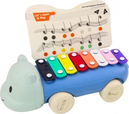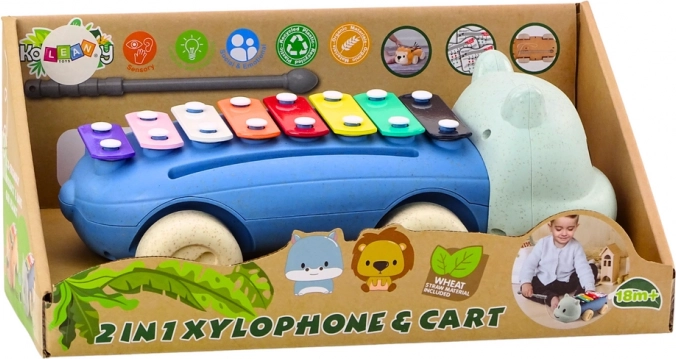 Țambalul pe roți în formă de hipopotam este o alegere ideală pentru micii iubitori de muzică.