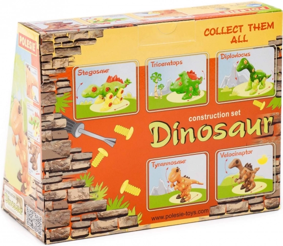 Pentru micii exploratori, prezentăm o serie de seturi de construcție sub formă de dinozauri – Tyrannosaurus, Stegosaurus, Triceratops, Diplodocus și Velociraptor. Jucăriile sunt realizate în culori naturale, din material de calitate și au forme rotunjite. Toate piesele jucăriei sunt concepute ca un set de construit și sunt unite cu șuruburi din plastic. Setul include și o șurubelniță în cruce, care permite demontarea și reasamblarea ușoară a modelului, făcând jocul și mai interesant. Jocul cu acest set reprezintă pentru copil dobândirea primelor experiențe și abilități în modelare și design, dezvoltând totodată imaginația și motricitatea fină.