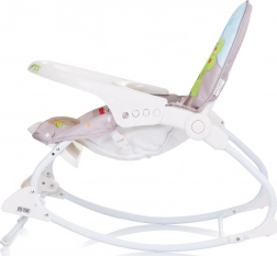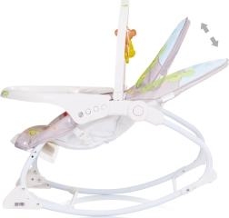 Scăunelul balansoar pentru copii Enjoy dinozaur oferă bebelușului liniște și distracție într-un singur produs. Combinația de melodii și vibrații delicate ajută la adormire și calmare, în timp ce bara cu jucării susține dezvoltarea simțurilor și a motricității. Datorită reglajului dublu al spătarului, poziția se adaptează ușor pentru odihnă sau joacă.