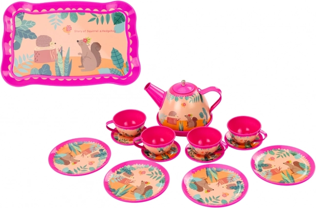 Acest set fermecător pentru cafea și ceai îi va încânta pe toți micii gazde. În set găsiți un platou elegant pentru servire, un ceainic pentru ceai sau cafea, 4 cești cu farfurioare și 4 farfurii de desert. Totul este asortat în roz și decorat cu motive de animale de pădure, oferind jocului o notă deosebită.