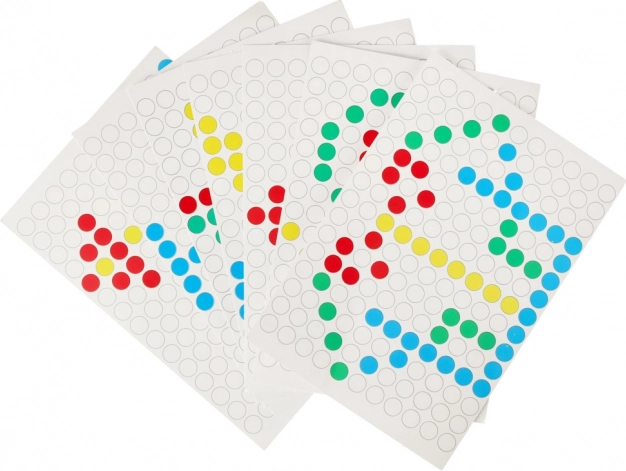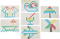 Sunt incluse 7 carduri cu modele care îi ajută pe copii să creeze imagini pas cu pas și, în același timp, sprijină recunoașterea culorilor și a modelelor.