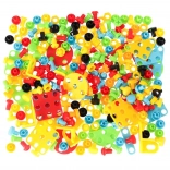 Placa perforată și formele colorate permit realizarea de modele, imagini și forme spațiale simple – imaginația nu are limite.