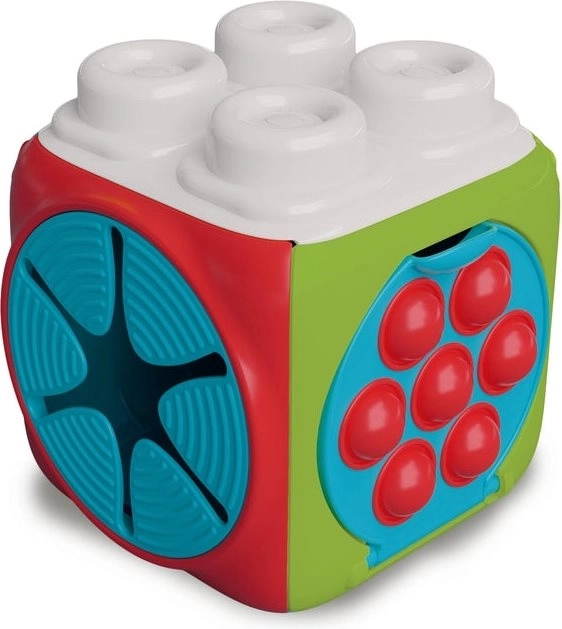 Cubul oferă elemente interactive, precum biluțe apasate pentru distracție suplimentară.