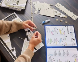 Extragi ușor cele 223 de piese din plăci, iar adezivul inclus și instrucțiunile clare te ajută să asamblezi modelul fără unelte speciale.