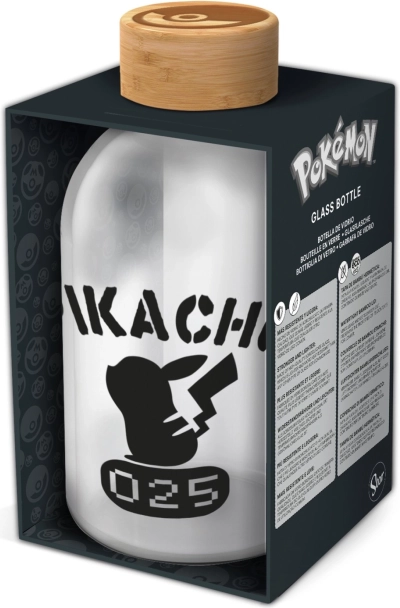 Elegantă Sticlă de Sticlă 620 ml Pokemon, partener ideal pentru călătorii! Este fabricată din sticlă borosilicată și dotată cu un capac cu înșurubare practic. Nu este potrivită pentru mașina de spălat vase.