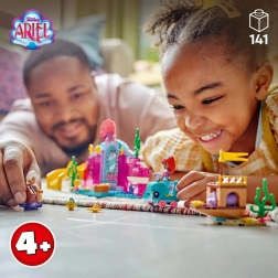 Descoperă lumea magică a distracției subacvatice cu setul LEGO Peștera de cristal a Micii Sirene Ariel, unde copiii pot construi și se pot juca cu peștera, platforma rotativă și toboganul. Acest set este ideal pentru dezvoltarea creativității și susține un joc plin de idei alături de prințesa Ariel.