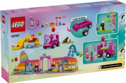 Sala de dans a lui Gabi nu este doar despre disco! Include pe Gabi, Daniel Pisoiul, Zâna Pisicuță, Pisicuța Marină și multe accesorii muzicale - inclusiv un autobuz de petrecere cu pupitru DJ, un ring de dans rotativ, o chitară, două microfoane și un glob disco sclipitor. Spațiul este pregătit pentru distracție fără sfârșit! Accesoriul include baloane, role, popcorn și două pahare pline de sorbet în zona de relaxare, precum și un catapult și cutii pentru un joc de doborât. Setul se încheie cu un tort pentru Gabi, cadouri și un tobogan. Include o placă de start mare pentru o asamblare ușoară pentru copii. Ghidul colorat cu imagini oferă instrucțiuni clare.