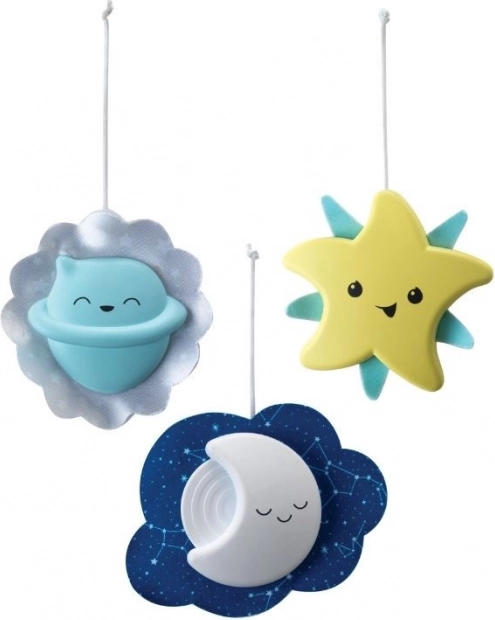 - 3 moduri de utilizare: carusel 0–5 luni, proiector/lampă pentru pătuț 5–18 luni, veioză de noapte pentru noptieră de la 18 luni.