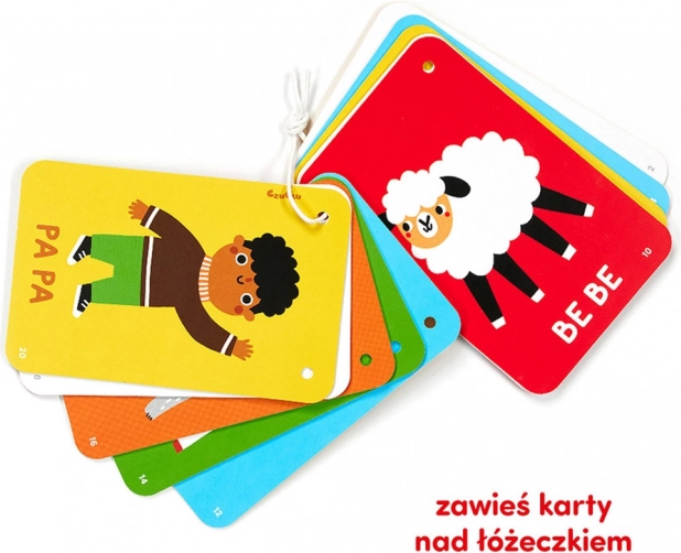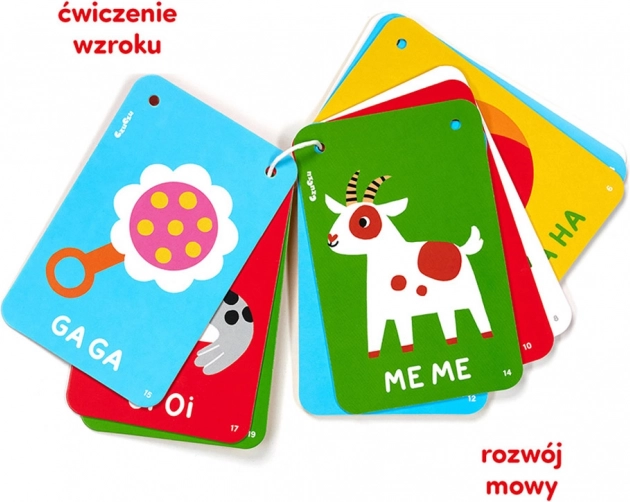 Cardurile au 2 orificii – le poți folosi individual, poți crea o ghirlandă spectaculoasă sau le poți prinde cu unul ori două șnururi. Formatul compact asigură că vei avea cărticica mereu la îndemână, acasă și în deplasare. Observă reacțiile bebelușului și descoperă modelele preferate, la care privește cel mai mult.