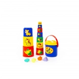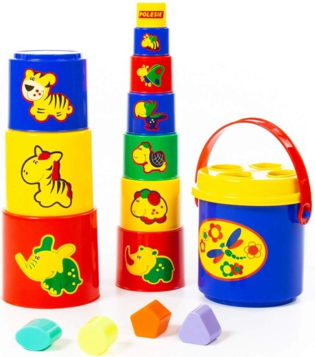 Jucăria este un companion grozav pentru cei mai mici și, mai ales, îi ajută prin joc și imagini să învețe animale, culori și forme noi. În plus, piramida poate fi ușor strânsă după joacă în găletușa inclusă.