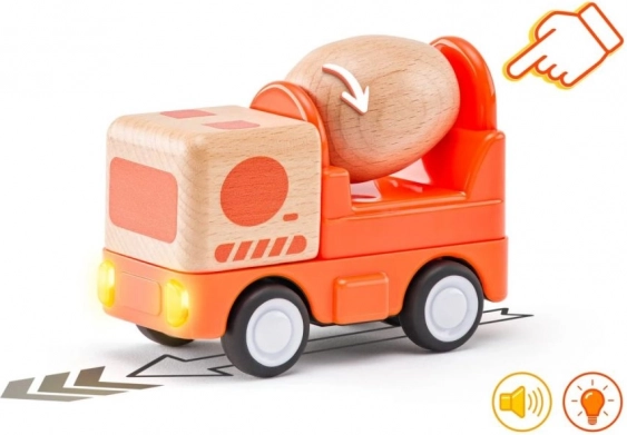 Malaxor de beton din lemn încântă micii constructori cu sunetele sale realiste și efectele de lumină. Ideal pentru copiii de la 18 luni, aduce distracție și dezvoltare a abilităților.
