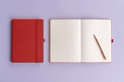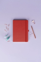 Caiet într-o frumoasă culoare roșie cu format liniat de dimensiuni 15 x 21 cm aduce o combinație perfectă de clasă și eleganță. Ideal pentru personalizare cu logo-uri de companie datorită texturii fine a suprafeței.