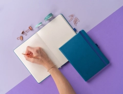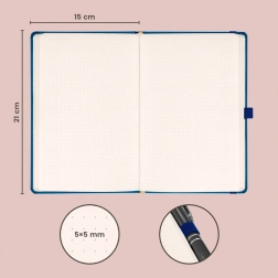Descoperiți combinația perfectă de clasic și eleganță cu caietul nostru cu puncte albastru. Acest caiet de dimensiuni 15 x 21 cm este proiectat având în vedere practicitatea, dar și stilul. Suprafața este creată astfel încât să permită ștanțarea ușoară a logo-urilor corporative, ceea ce îl face alegerea ideală pentru utilizare profesională și personală.