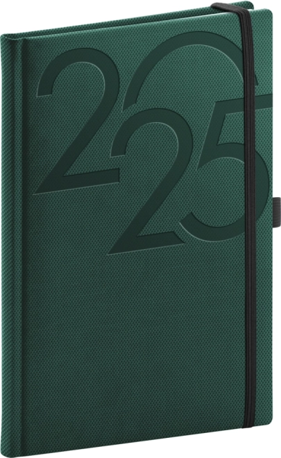 Agendă săptămânală Ajax 2025 în verde. Această agendă oferă un design elegant și funcțional pentru organizarea eficientă a timpului.