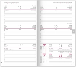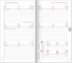 - Dotată cu funcții practice precum semne de carte textile și colțuri perforate.