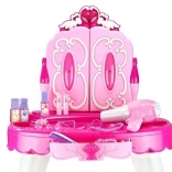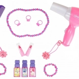 Copiii se pot juca cu uscătorul de păr, pieptenele, sticluțele de parfum, mărgelele, brățările, inelele și multe alte accesorii.