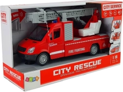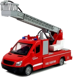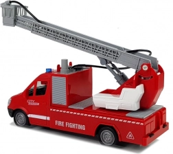 Vehiculul este echipat cu o scară mobilă de până la 42 cm! De asemenea, include diode care pot atrage atenția de la mare distanță și un rezervor de apă frontal care este sursa pentru pompa de stropit 13 este suficient să apăsați pompa de câteva ori. Jucăria este realizată la o scară de 1:16.