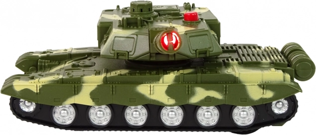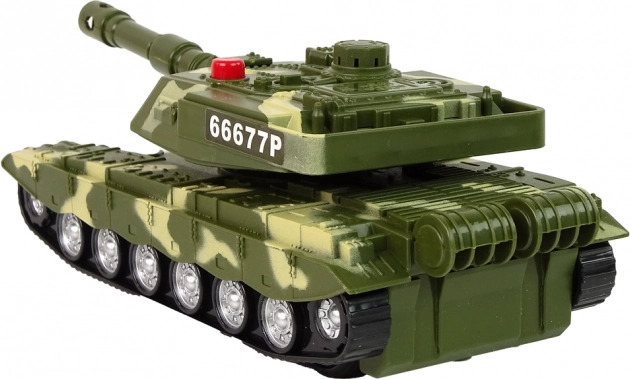 Acest model este echipat cu elemente mobile, cum ar fi turnul rotativ și tunul, ce sporesc realismul și permit copiilor s1 creeze scenarii diverse de acțiuni combative. La apăsarea butonului roșu, tancul prinde viaț cu sunete autentice și efecte de lumin, oferind o adevrat atmosfer de rzboi.