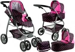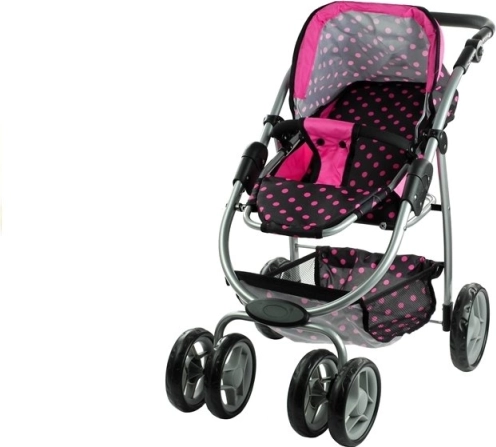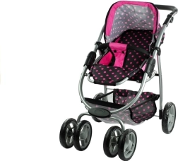 Căruciorul Alice 2 în 1 cu design negru-roz combină stilul și funcționalitatea. Este conceput să arate ca un cărucior real, susținând responsabilitatea și empatia micilor mame în timpul jocului. Schimbările între landoul adânc și scaunul sport sporesc distracția și dezvoltă abilități interpersonale, imaginația și creativitatea copiilor.