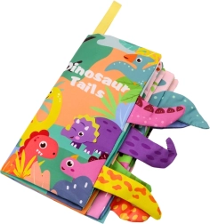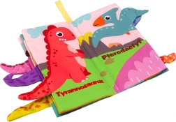Descoperiți farmecul acestui leporelo textil plin de culoare, plin de dinozauri. Fiecare pagină este bogat ilustrată, oferind o experiență vizuală și tactilă datorită cozilor proeminente ale dinozaurilor care sprijină dezvoltarea senzorială a copiilor. Copiii pot să învețe cuvinte în engleză datorită numelor dinozaurilor prezente pe pagini.