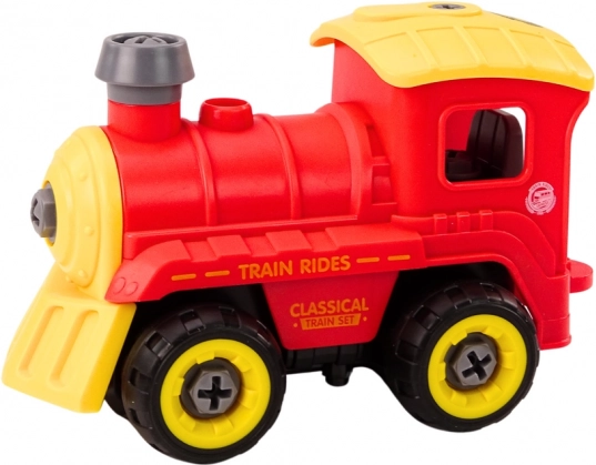 Această locomotivă demontabilă roșu‑galben transformă jocul într‑un atelier creativ – copiii își asamblează singuri vehiculul cu ajutorul șurubelniței, apoi îl pot conduce cu bormașina care funcționează ca telecomandă. Sunetele realiste ale trenului și ale motorului intensifică experiența de condus și stimulează imaginația.