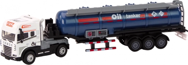 Descoperiți un camion cisternă realizat cu precizie, la scara 1:24, care reproduce fidel un vehicul real. Cabina albă și remorca cisternă realistă stimulează jocul creativ, în care copiii pot simula transportul de combustibili și pot învăța elementele de bază ale transportului și siguranței.