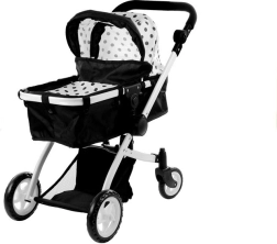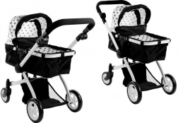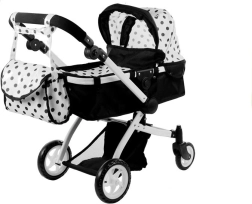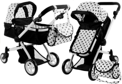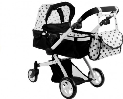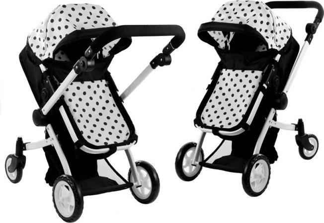 Căruciorul pentru păpuși ALICE, în elegantul design alb‑negru cu buline, oferă o soluție universală 2‑în‑1 – treci în câteva clipe de la landou la modul sport. Ramele ușoare și totuși solide din tuburi de aluminiu, roțile din spumă și cauciuc pentru rulare silențioasă în casă și cursă lină afară, precum și blocarea împotriva plierii accidentale asigură joacă sigură și confortabilă.
