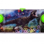Jocul de buzunar cu apă, cu motiv de dinozaur, îi va încânta atât pe copii, cât și pe adulți. Cu ajutorul a două butoane pui inelele în mișcare în apă și încerci să le așezi pe țepușe. Principiu simplu, dar joc captivant, care antrenează îndemânarea, coordonația și răbdarea. Dimensiunile compacte și operarea ușoară fac din acest joc un companion ideal de călătorie.