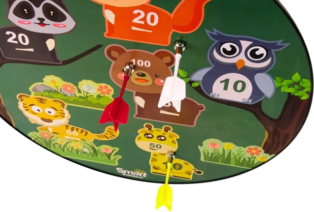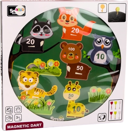 Acest joc de țintă magnetic aduce copiilor ore întregi de distracție plină de bucurie și siguranță. Ținta verde, colorată, este decorată cu animale (girafo, vulpe, tigru etc.) și valori de punctaj care îi motivează să-și îmbunătățească performanțele. Mecanismul magnetic elimină vârfurile ascuțite, astfel încât jocul este potrivit și pentru copiii mai mici.