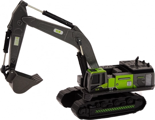 Excavator pe șenile din metal la scară 1:55 în varianta negru-verde este o jucărie grozavă pentru micii entuziaști ai construcțiilor. Este fabricată din materiale de calitate, cu accent pe detalii și durabilitate, dezvoltând imaginația și abilitățile manuale ale copiilor.