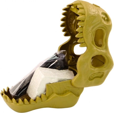Întregul set este plasat într-un craniu de dinozaur din plastic, care îndeplinește o dublă funcție: este un recipient de depozitare practic și o decorațiune stilată, ideală pentru a fi așezată în camera micului fan al dinozaurilor. Astfel, setul oferă nu doar distracție de durată, ci și un element decorativ atractiv.