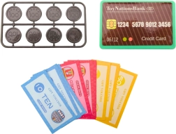 Setul include monede din plastic, bancnote/cupoane din hârtie și un card de plată pentru antrenarea plăților în numerar și fără numerar.