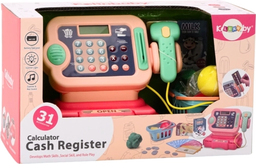Această casă de marcat pentru copii este un instrument ideal pentru învățare prin joc. Funcțiile realiste, precum scannerul cu sunet, displayul cu calculator și sertarul pentru bani care se deschide, oferă o experiență autentică de cumpărături. Setul include și un coș cu alimente, monede și bancnote din plastic și un card de plată, astfel încât copiii pot plăti atât cash, cât și cu cardul.