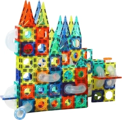 Bucurați-vă alături de copilul dvs. de ore întregi de distracție cu acest set de pistă pentru bile și piese de construcție magnetice! Această jucărie captivantă combină două activități îndrăgite – construcția cu piese magnetice și fascinanta pistă pentru bile.