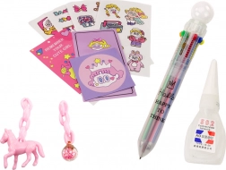 Setul include, de asemenea, o varietate de accesorii pentru o personalizare distractivă. Conține benzi colorate, autocolante și semne de carte cu pompoane, care sunt nu doar practice, ci și estetice.