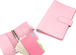 Blocnotesul roz cu design elegant din piele oferă un aspect stilat și durabil. În interior, veți găsi hârtii de diferite tipuri: liniate, în carouri și colorate, care permit o varietate de utilizări, de la desenat la scris și proiectare.