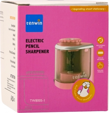 Ascuțitoare roz, compactă și stilată TENWIN pentru creioane și creioane colorate 6–8 mm oferă ascuțire rapidă și precisă acasă, la școală și la birou. Datorită modului electric și manual, lamei interschimbabile (una de rezervă este în pachet), recipientului transparent pentru așchii și blocării de siguranță a capacului, utilizarea este maxim de comodă. Alimentarea este asigurată de 2× AA baterii (nu sunt incluse).