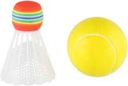 Setul include o minge și un coșuleț colorat, ceea ce îl face excelent pentru tenis ușor sau badminton.