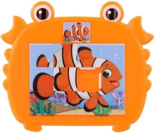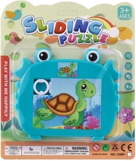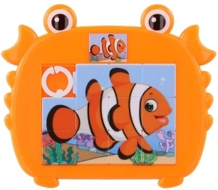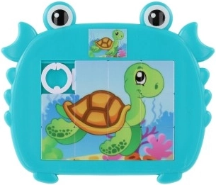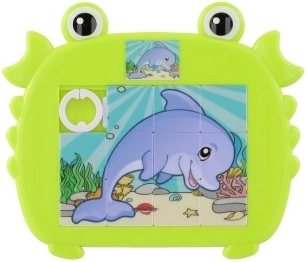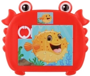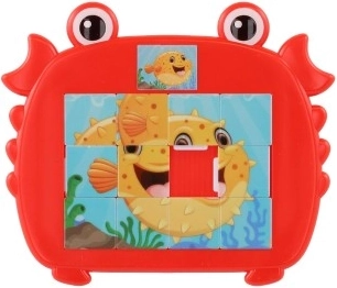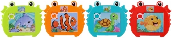 Puzzle glisant vesel și colorat pentru copii, în formă de crab, cu motive de animale marine. Distracție și dezvoltarea abilităților pentru degețelele dibace mici, datorită motivului marin atractiv.
