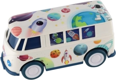 Autobuzul spațial din plastic cu volant este un adaos perfect la colecția fiecărui mic șofer. Are 13 cm și datorită designului său viu va atrage orice copil. Este făcut din plastic rezistent și este disponibil în două culori, adăugând astfel la atractivitatea sa. Autobuzul este proiectat pentru a sprijini creativitatea și imaginația copiilor prin joc.